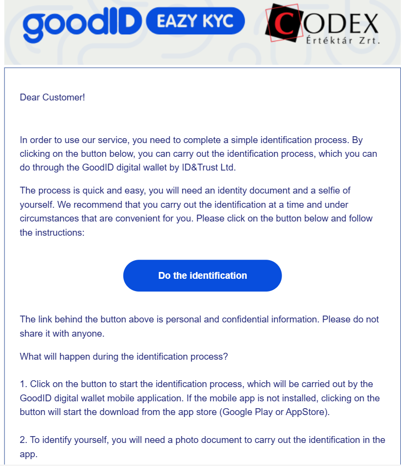2. Codex 负责 GoodID 身份识别的员工会持续监控此专用文件夹,并将 KYC 报告通过电子邮件发送给客座投资者(以下简称"申请人"),同时告知申请人在线身份识别链接将稍后单独发送。
