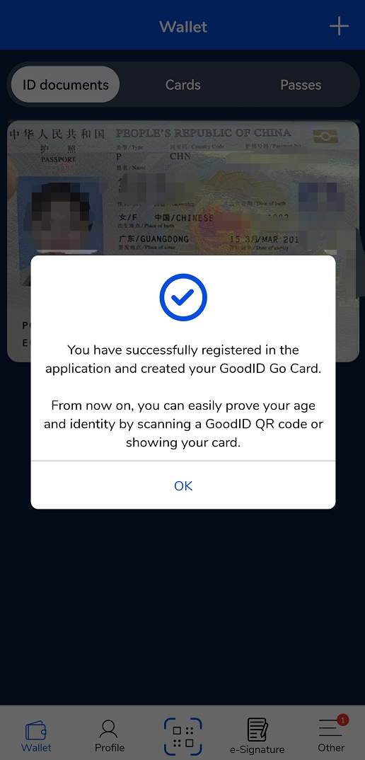 8. 申请人在 GoodID 应用程序中完成所需合同文件的电子签署。签署完成后,GoodID系统会自动通知相关的Codex工作人员。